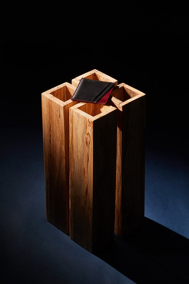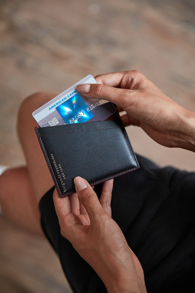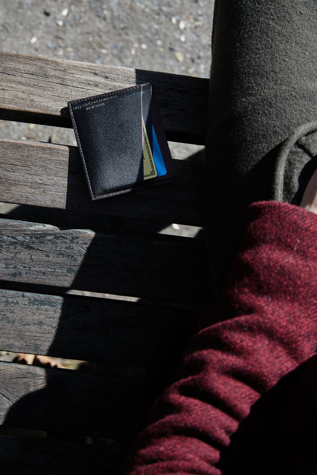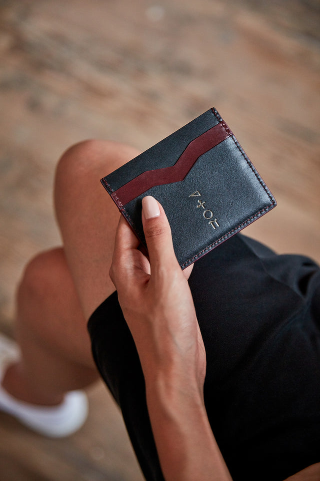 Lovers of untraditional wallet styles: feast your eyes on Lambda. This stylish card holder has four card slots and a middle compartment to keep your currency secure. Inspired by Mike Fun, Lambda is made of black and burgundy vegetable-tanned leather and has a resin-coated interior that allows you to store and remove your cards with ease. We’re certain this beautifully crafted piece will serve you well for ages.