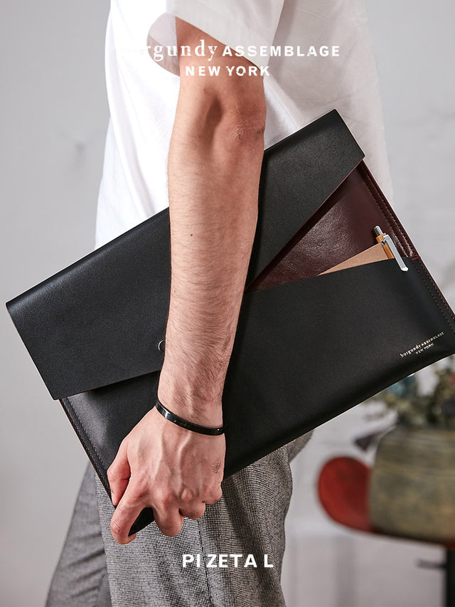 The vegetable tanned leather is specifically developed for Burgundy Assemblage's Pi Collection using only the finest quality natural hides. Full-grain leather has a character all its own, often displaying natural markings that lend beauty and refinement to the patina of this top quality material. Possible marks and scratches are to be seen as a natural part of the leather/product and cannot be regarded as a fault.