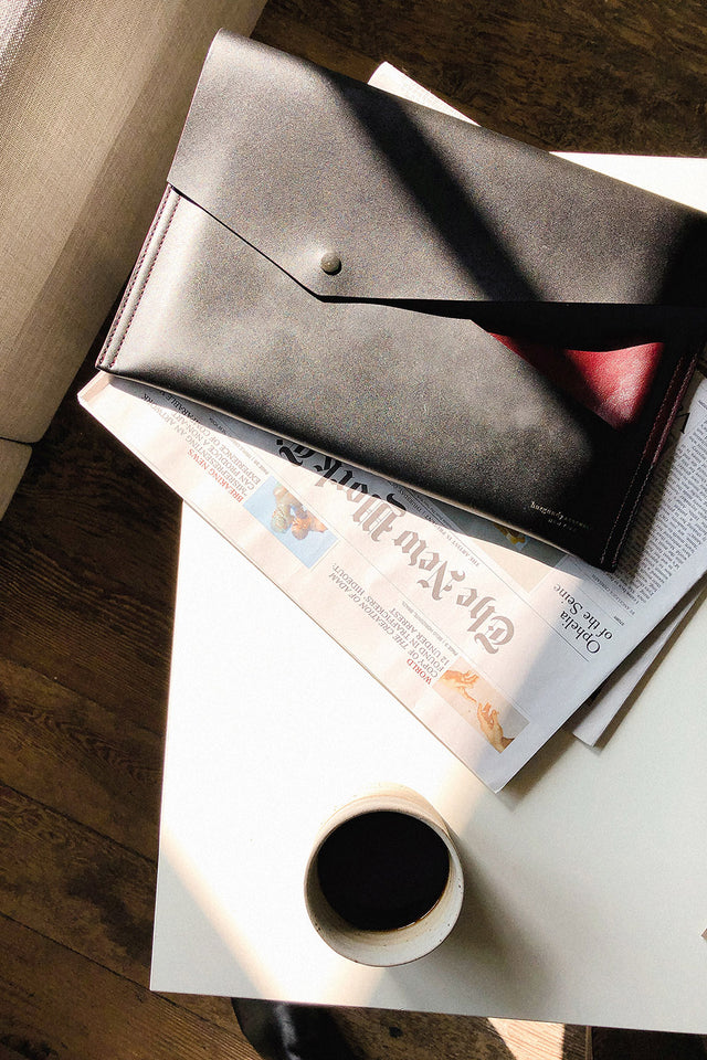 Simple. Serviceable. Stylish. Our new calfskin laptop sleeve, Zeta, is an understated beauty. Designed with minimalist geometric lines, a discreet front pocket and secured with a single metal snap, Available in two sizes that perfectly accommodates a 11-inch laptop and 13-inch laptop, but can also serve as a chic business portfolio. A resin-coated back makes it feel smooth to the touch and an unobtrusive handle makes it easy to carry.
